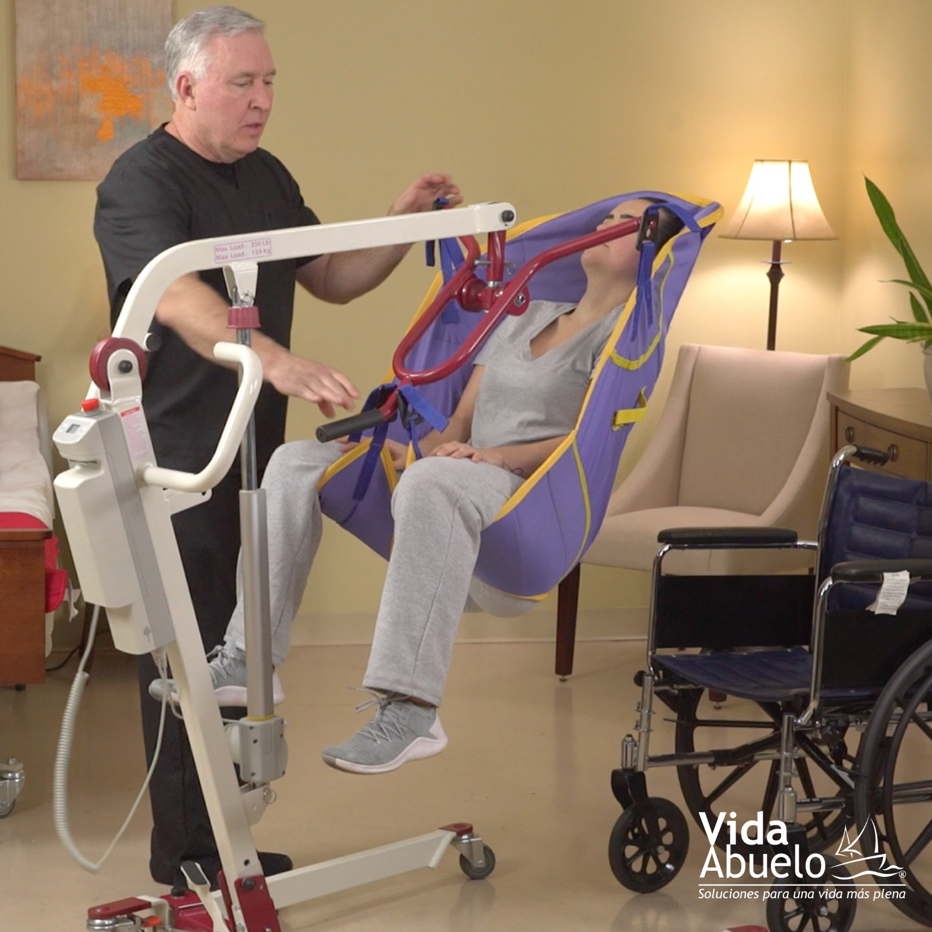 - Permite trasladarlo de la cama a la silla de ruedas o a un sillón, evitando maniobras peligrosas.